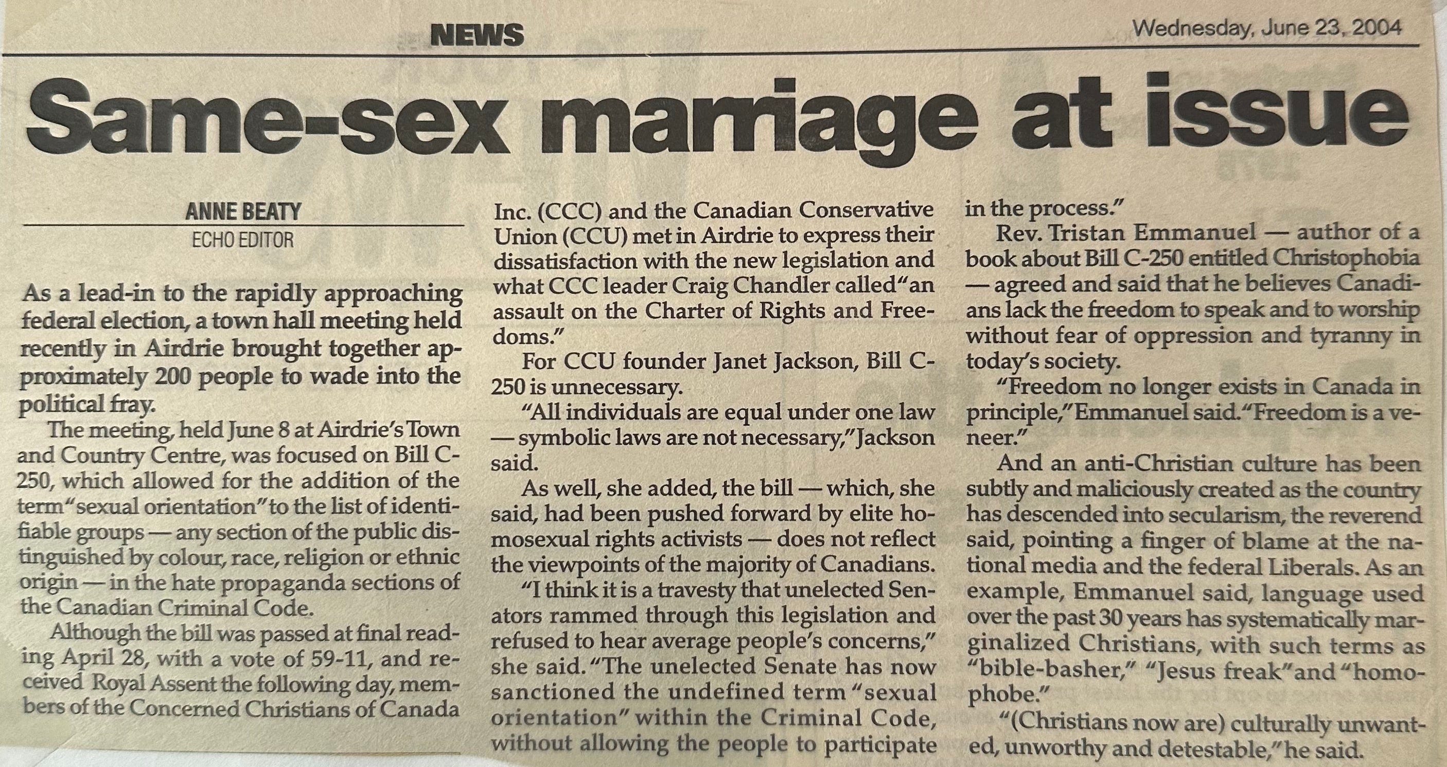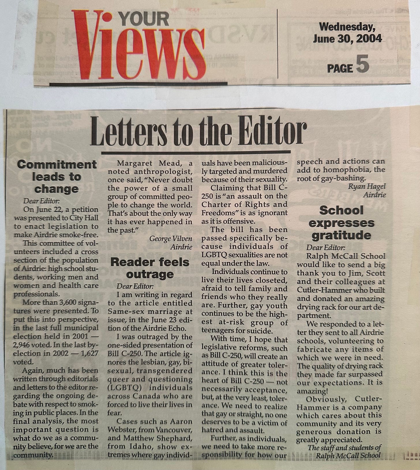 Today, I had the benefit of time travelling 22 years ago to June 2004 where there was a similar energy. It happened while coming across a newspaper article I saved and my Letter to the Editor I wrote in response. An ‘outraged’ response.
